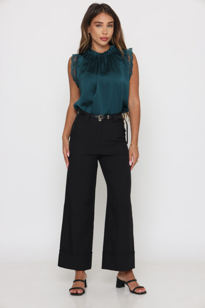 מכנס קלאסי מתרחב שילוב חגורה שחורה