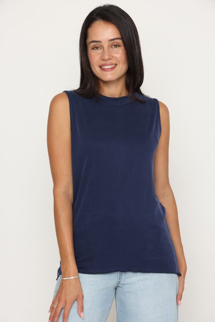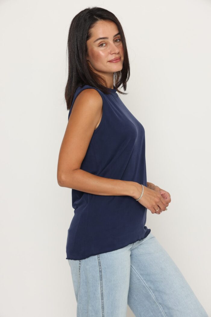 מכנס לוס מתרחב שילוב חגורה צמה כחול נייבי