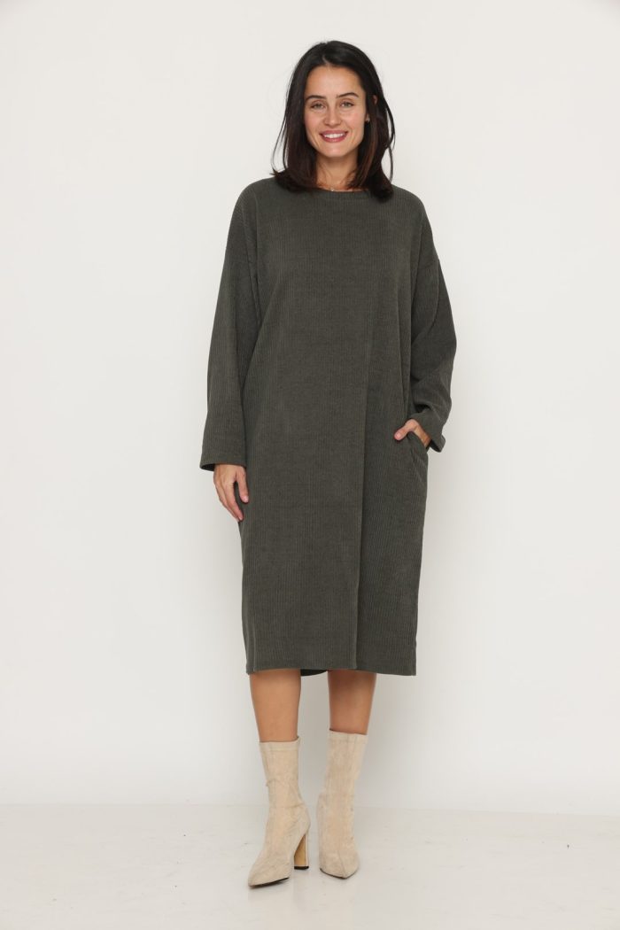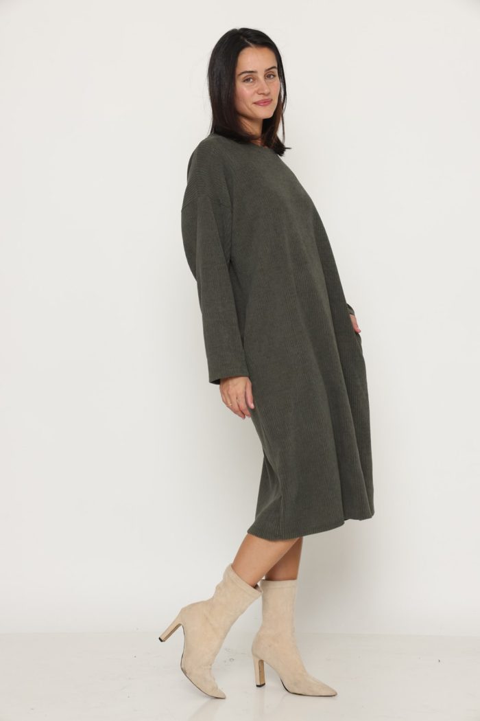 שמלה סריג לוס עם כיסים ירוקה