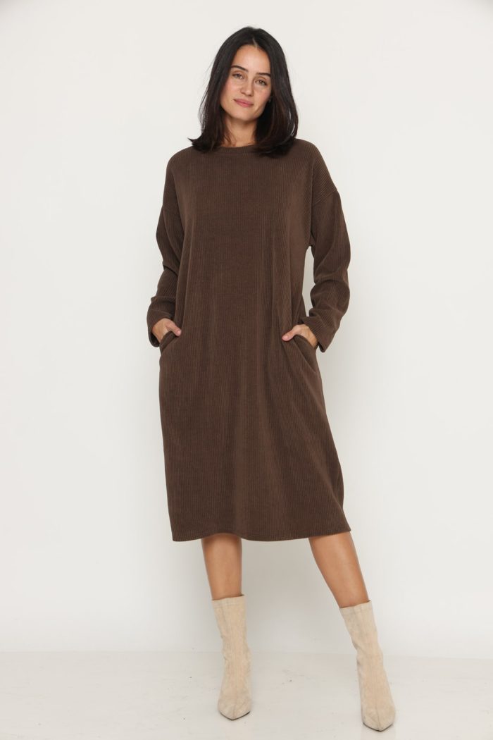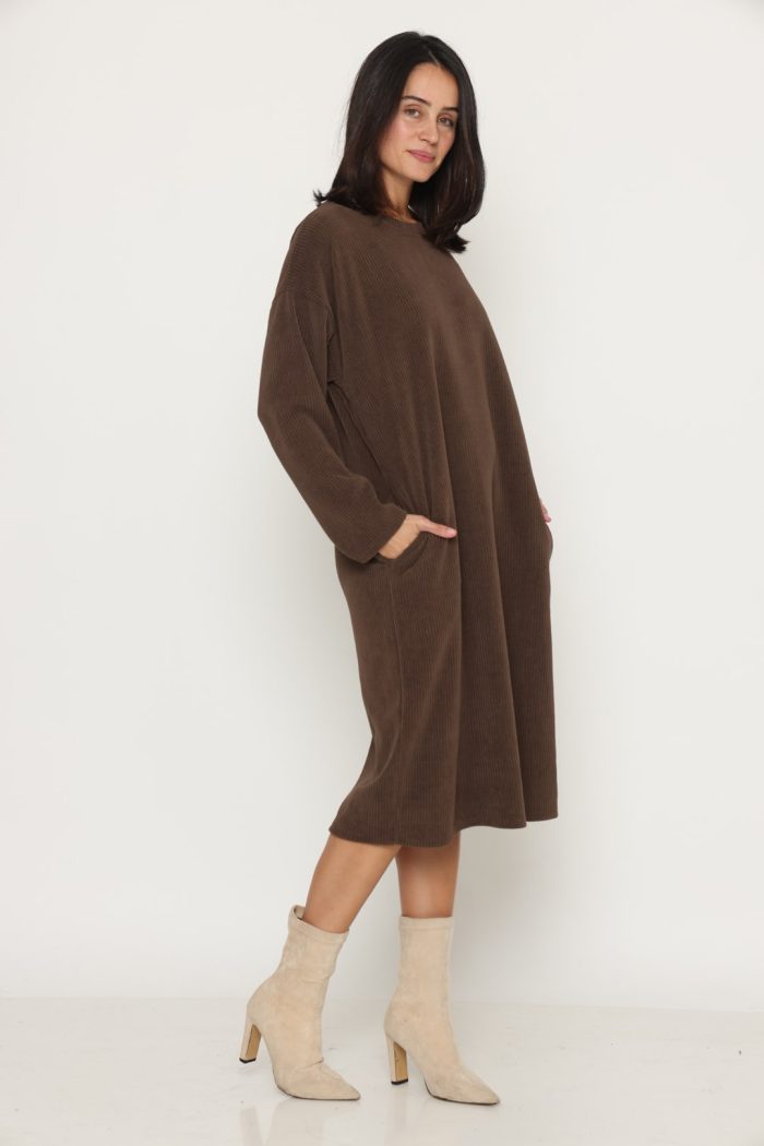 שמלה סריג לוס עם כיסים חומה