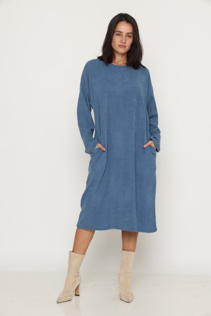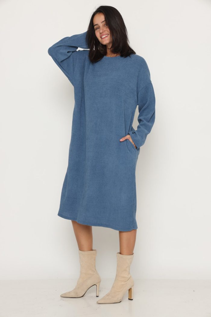 שמלה סריג לוס עם כיסים ג׳ינס