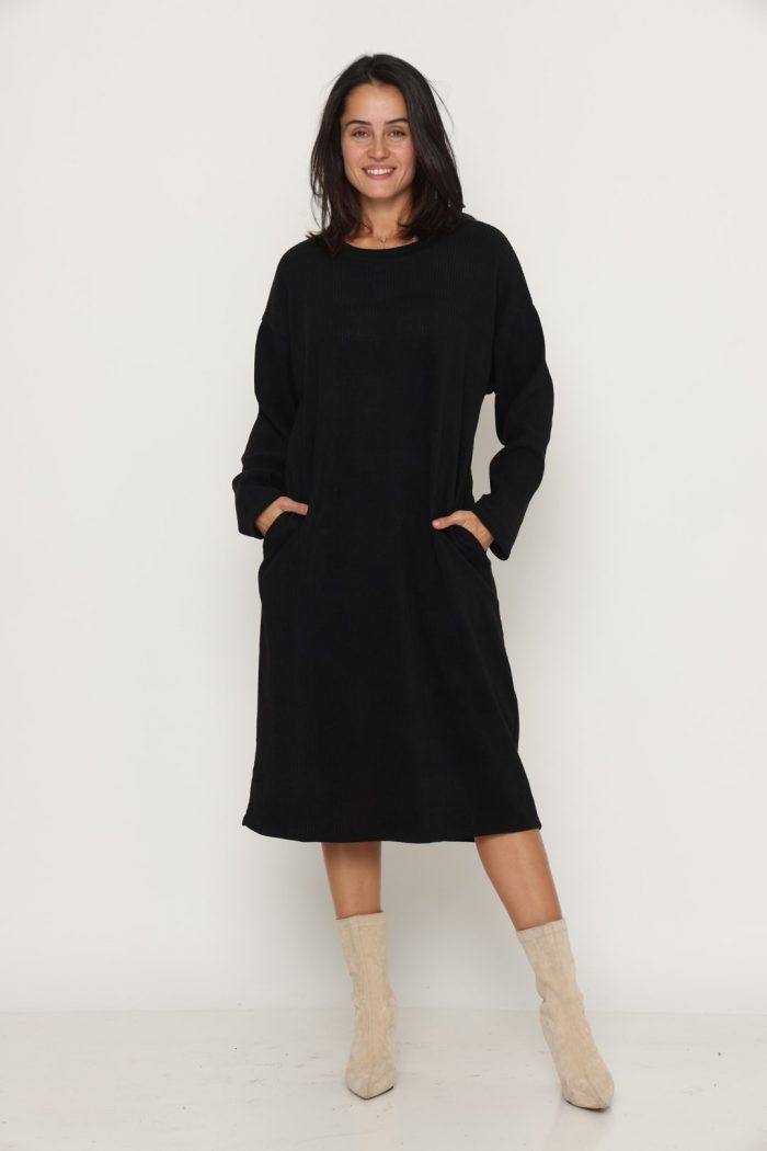 שמלה סריג לוס עם כיסים שחורה