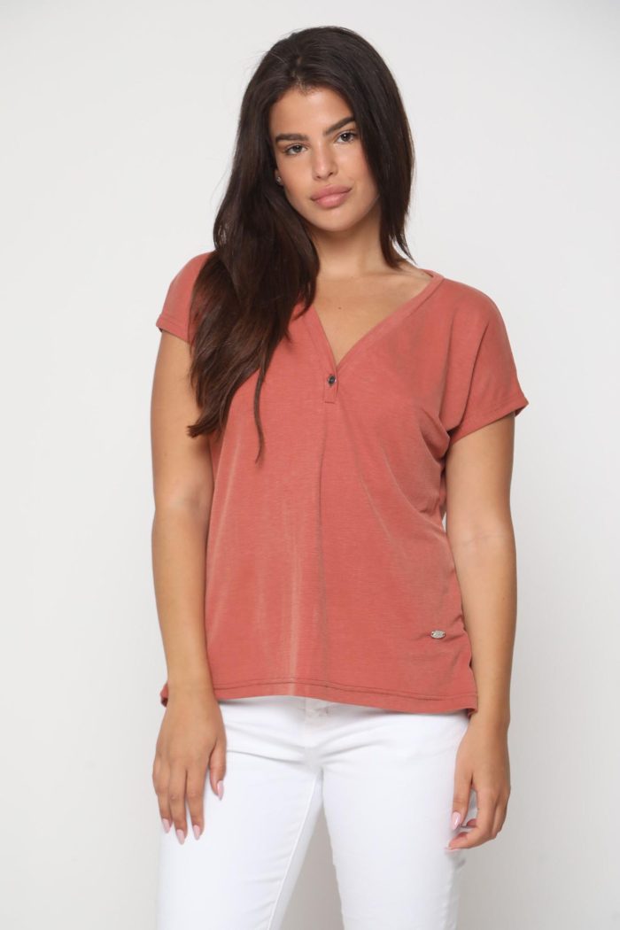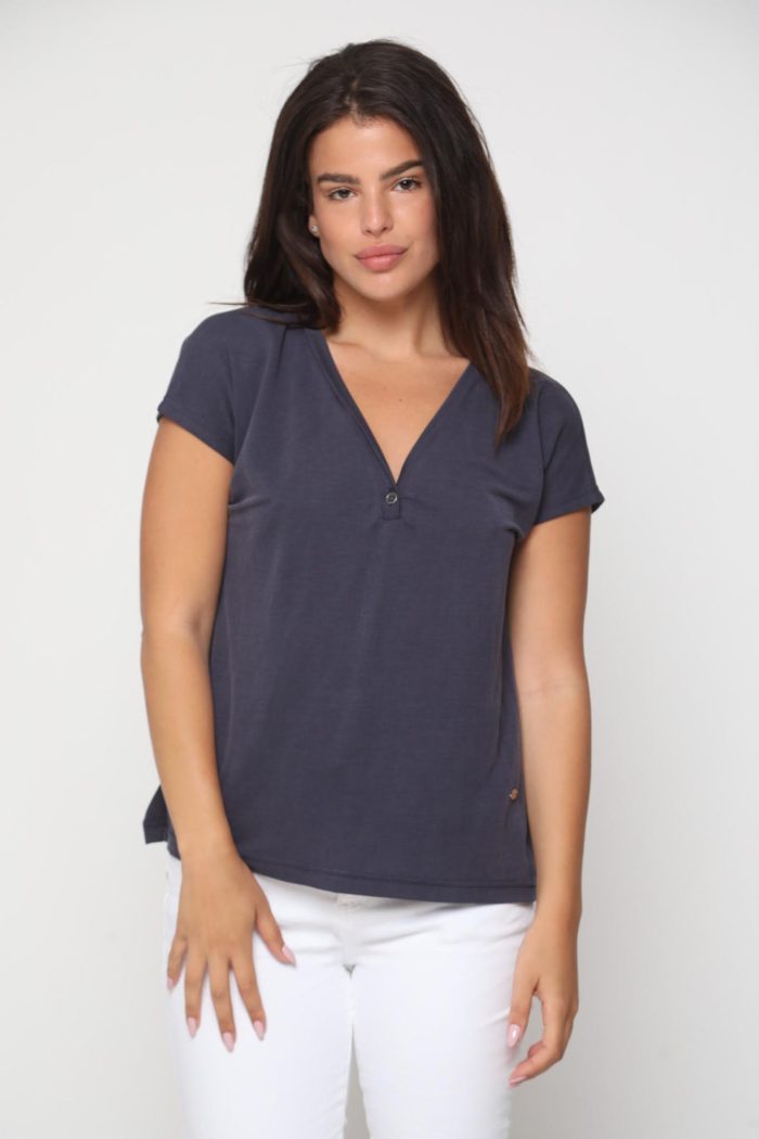 חולצה מקסימה עם מפתח קטן וכפתור פרח.
