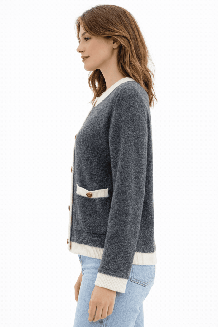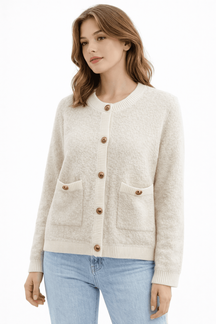 סריג בוקלה רך ומפנק בגזרה קלאסית ונשית.