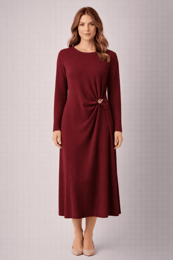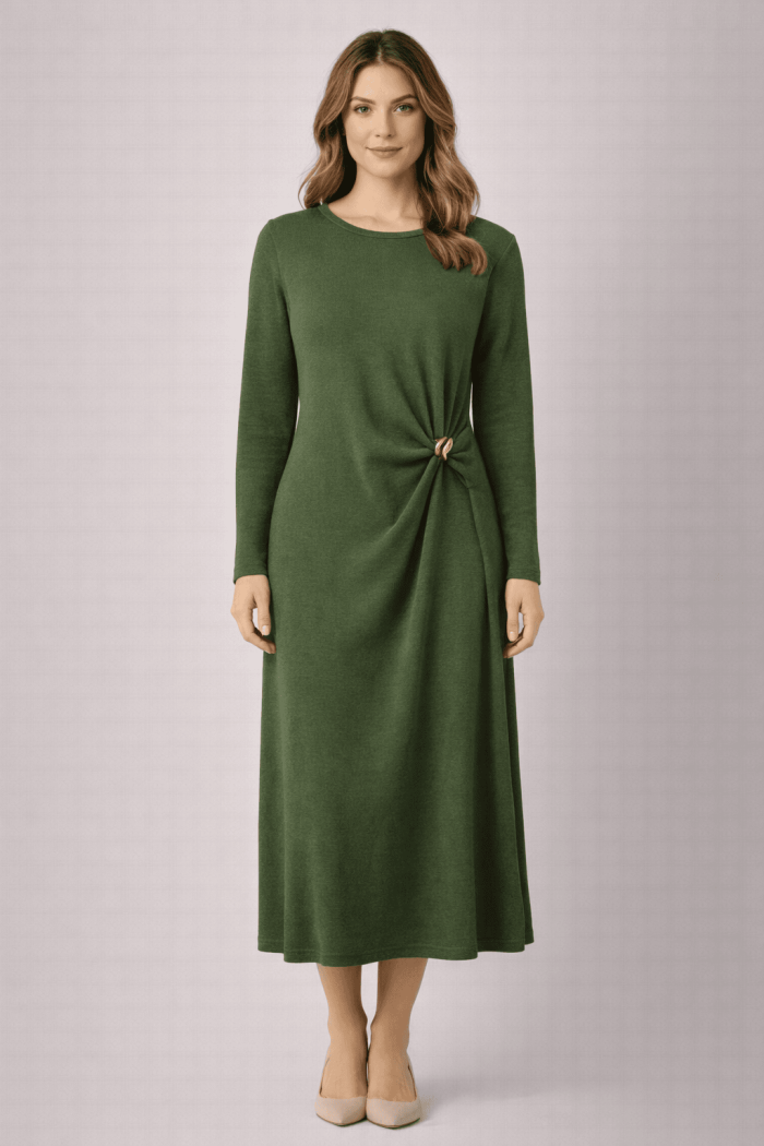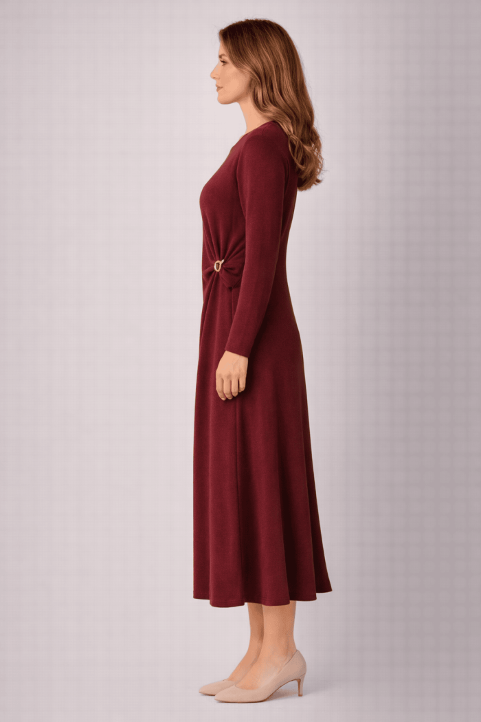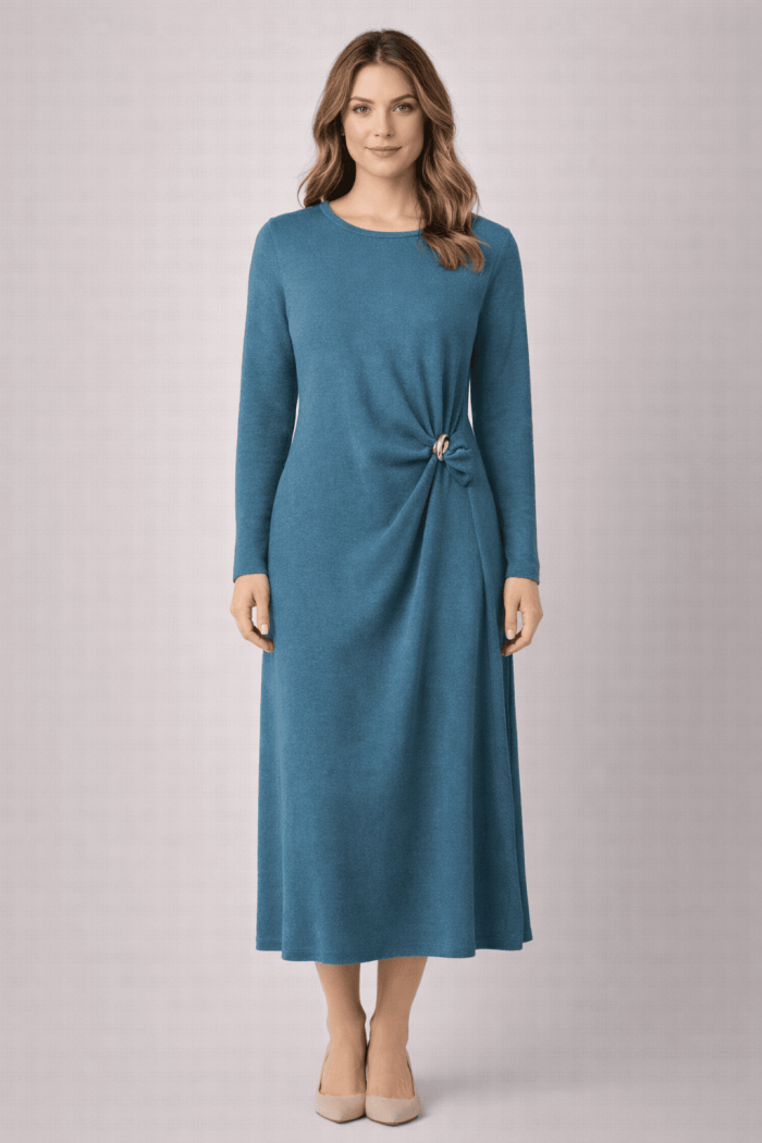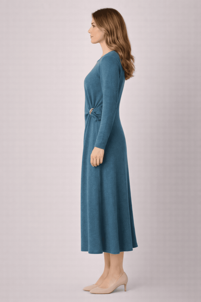 שמלת סריג מחמיאה, נשית ואלגנטית, עשויה מבד סריג נעים ורך למגע.
