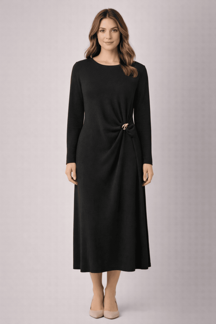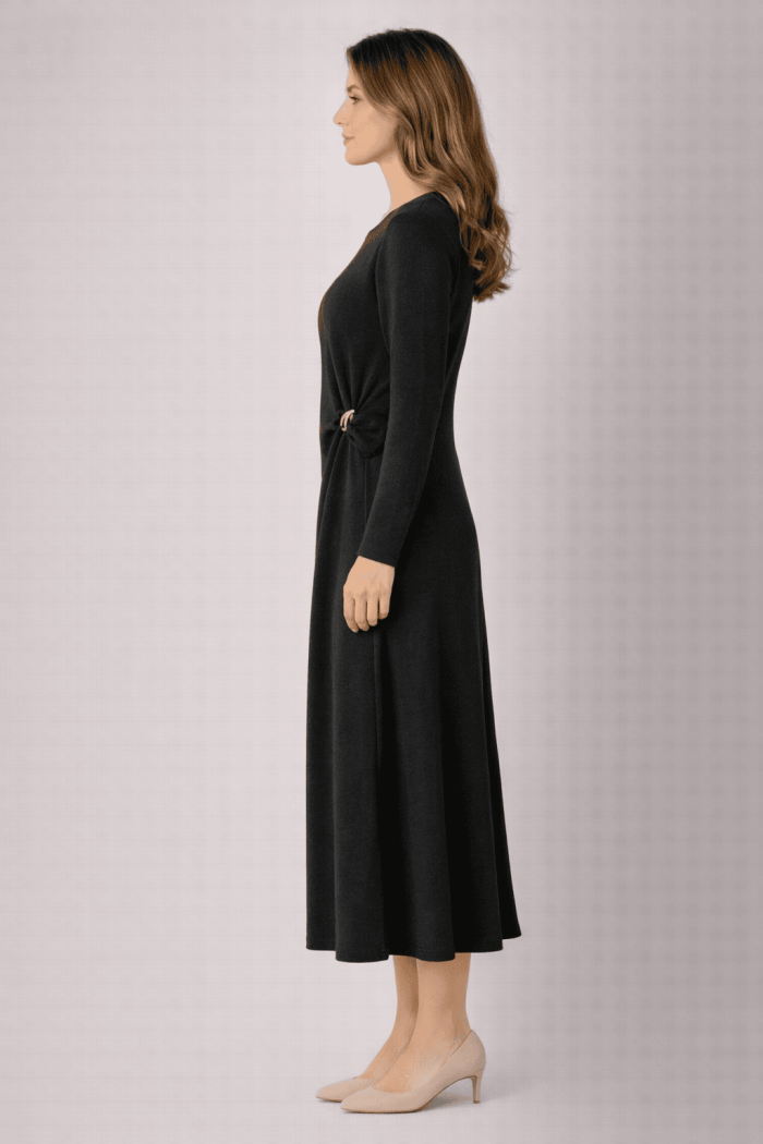 הדגם כולל אבזם בצד המותן עם קפל עדין המחטב את הגוף ומעניק טאץ' ייחודי, מודרני ומלא סטייל.